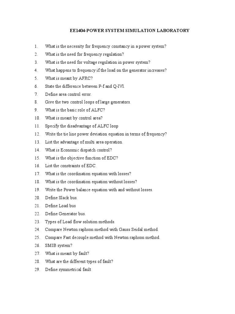 Power System Simulation Laboratory Viva Questions